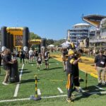 She watched her stepson, Emmett Foley, 9, play on a new turf field installed outside Acrisure Stadium. Kids tossed footballs and ran through agility courses.