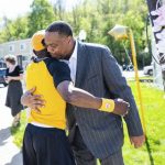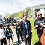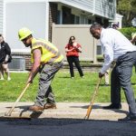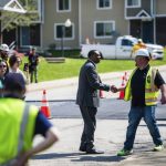 “It’s all about the safety of our children,” Gainey said after throwing a football with local kids who watched the construction. “This project will make it more safe. We don’t ever want to lose a child again.”