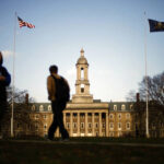 In this Nov. 11, 2011 file photo, students walk past the Old Main building on the Penn State campus in State College.