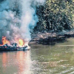 The boat caught fire on the water near the Allegheny River Turnpike Bridge, which carries Interstate 76, the Pennsylvania Turnpike, from Harmar Township’s Harmarville neighborhood across the Allegheny River and into Plum.