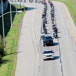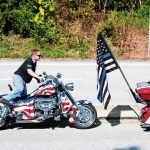 A New Kensington police car driven by Chief Bob Deringer led the ride.Behind him and in front of the hundreds of motorcycles was Brian Shaw’s Ford pickup decked out with an American flag and a police “thin blue line” flag.