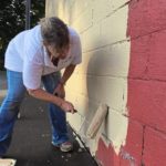 Karen Sadowsky of Harrison, an administrator at ATI, paints at Dreshar Stadium in Tarentum as part of the United Way of Southwestern Pennsylvania’s Day of Caring on Friday, Sept. 13, 2019.