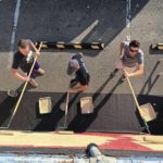 ATI employees, from left, Dylan McNany of Plum, Jared Wiesen of Shadyside and Eric Kellaway of Allegheny Township paint at Dreshar Stadium in Tarentum on Friday, Sept. 13, 2019, as part of their company’s participation in the United Way of Southwestern Pennsylvania’s 17th annual Day of Caring.