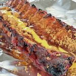 Above: Smokey Joe’s House of Q has an outdoor smoker kitchen in West Leechburg. Specialty barbecue chicken, brisket, ribs, pulled pork and chicken and wood-fired pizzas are the staples. Left: A half-rack of ribs ($12) from Smokey Joe’s.