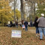 Campaign volunteers offered attendees the opportunity to sign up for door-to-door canvassing — starting with taking their temperatures prior to handing out campaign materials for them to share with neighbors and friends.