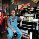 Tattoo artist Duke Miller, 70, inside his Greensburg studio, Old Skool Tattooing Company.