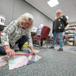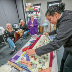Up to a dozen people meet Tuesday mornings, cheerfully piecing together colorful patterns to create table runners, lap blankets and holiday-themed tea towels.