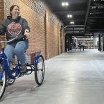 Cora Marchand of Bethel Park works as a quality assurance technician. She scoots around the large facility on a company-provided bike.