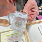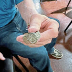 Butler Treasure Hunting Club member Phillip “Squeak” McDowell presents his best finds during a club meeting in February 2024. Some finds include Jacksonian buttons, Sears tokens made from the copper of the Statue of Liberty and Pittsburgh Rail tokens.