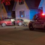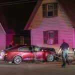 The crash was reported along Federal Street just before 11 p.m. The driver was reportedly taken to a hospital. It was unclear if they or anyone in the house were hurt.