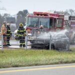 Northbound traffic on Route 28 was snarled briefly Tuesday when a car caught fire shortly after 9 a.m. between Exits 15 and 16 in Harrison. No injuries were reported, and all travel lanes have reopened.