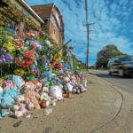 A memorial of stuffed animals, photos and handwritten notes still sits outside the family home.