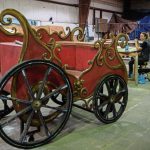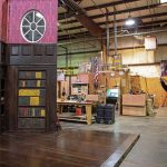 Employees work on theater sets inside the Pittsburgh CLO Construction Center for the Arts in Springdale.