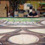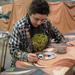 Scenic artist Jessie Notarius paints one of the pieces of a set.