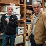 John Edkins (right), director of production and technical supervisor of the Pittsburgh CLO Construction Center for the Arts, and his son, Jordan Edkins, shop foreman and technical director, talk about a set from the show “The Play That Goes Wrong” inside the Springdale warehouse.