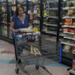 The store’s general manager, George Sears, worked to consolidate an increasingly slim frozen foods section on Friday as shoppers scanned for deals around him.