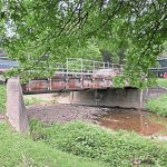 There are three other bridges spanning Little Pucketa Creek at the high school — a pair of identical pedestrian bridges and another vehicle bridge near the football stadium that is shared with the Northern Westmoreland Career & Technology Center.