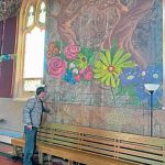 In the space where Mass was once celebrated, Rhodes painted a floral mural over the faded wallpaper and opened the room to different events.