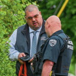 Armstrong County Deputy Coroner Timothy Graham (left) assists at the scene of a house fire in the 300 block of Logan Avenue in Leechburg.