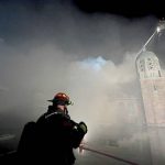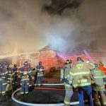 Firefighters were hampered by a metal roof that kept the flames in and water out, said Keith Dziobak, chief of Arnold Fire Company No. 2, and crews eventually resorted to trying to break through the fire-weakened roof with hoses from aerial trucks.