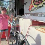 Nadine Artman, of Hot Ash Pizza, tends to a pizza baking in the wood-fired brick oven mounted in theirfood truck. Hot Ash Pizza was among the numerous attractions at the Fifth Avenue in New Kensington event Friday evening. It was the second of several scheduled this year.