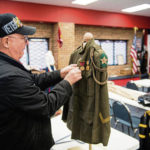 Each coat was decorated with ribbons and patches indicating where its owner had served. Callender’s grandfather, James Callender Sr., served in the 5th Regiment, which fought in the Battle of Belleau Wood in France. James Callender’s coat has a special green rope draped over the shoulder — a “French Fourragère” — to honor his regiment’s actions during the battle.