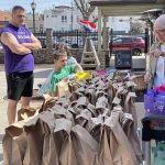 During the few hours of clear skies on Saturday, families stopped by Knead Community Cafe in New Kensington to pick up a free lunch, coloring books, journals and other treats at the Easter Grab n’ Go.