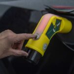 The device, similar in size to a gas nozzle, is equipped with adapters to fit every socket of hybrid or electric vehicles. A color-coded illuminated handle glows in red, green or blue to let users know when the safe mode is reached.