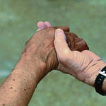 Lewis Smith and Richard Samuels, both of Lower Burrell, join hands in prayer during a National Day of Prayer service in New Kensington on Thursday, May 2, 2019. Samuels is pastor of Cadogan Union Church.