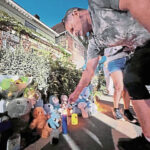 Grief-sticken Amber Bonnoni (left) could not stay on her feet as she visited the site of a makeshift memorial for her daughter, Roxanne, 11, who was struck and killed by a car Tuesday evening in her Natrona neighborhood. She and other loved ones were awaiting the start of a vigil Friday evening to commemorate Roxanne.