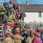 At some point during the firefighting effort, Richard Schuller, 22, a member of Highland Hose, got his feet stuck in his company’s aerial ladder. Details of how that happened were not available.