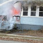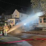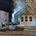 The home appeared to be heavily damaged and the front porch area was charred. Firefighters appeared to be dousing hot spots 90 minutes after flames broke out. It’s unclear how the blaze started.
