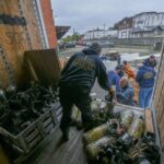 Ed Schmidt (right) and Robert Clark (second from right) unload firefighter breathing apparatuses on Wednesday, Oct. 2, that were donated by the Bethel Park Fire Company to help North Carolina fire departments wiped out by flooding from the remnants of Hurricane Helene. The department is among many expected to bring donations of gear, equipment and tools to New Kensington to be sent South.
