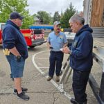 New Kensington fire Chief Ed Saliba Jr. (center) coordinates with members of his department, Capt. Bruce Crivaro (right) and firefighter Tony Errica on Wednesday, Oct. 2, as donations begin arriving to help North Carolina fire companies wiped out by flooding from the remnants of Hurricane Helene.