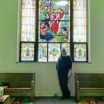 The interior is cozy but awe-inspiring with a steep pitched roof, wooden pews and spectacular floor-to-ceiling stained-glass windows. On holidays and other special days, the church was decorated with glass lanterns hung from shepherd hooks.