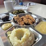 Martin’s TV dinner meal was served on a stainless-steel, retro-style cafeteria tray.