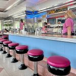 Pink barstools add a pop of color inside Dolly’s Diner in North Apollo.