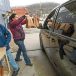 Jackie Gaughan of Freeport hands children’s lunches in to a van at the NextHome Real Estate office on Fifth Street in Freeport on Tuesday, March 17, 2020.