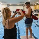 They took turns diving into the water while fellow students jumped in to “save” them. They learned proper breathing techniques and strength training.