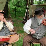 Civil War reenactors Mark Kinan of West Mifflin and Joel Cribs of Youngwood play old-time music at the Burtner House’s last Strawberry Festival in 2019.