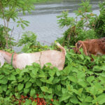 At the kayak launch in Natrona, the animals will be chomping away at the knotweed, vines and honeysuckle that grow on the hillside — all of which are invasive. They work 24/7.