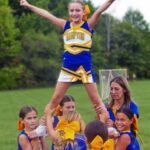 Competing in CheerFest were girls from the six communities participating in the Northern 28 Football League, divided into squads of ages 8 and under, 10 and under, and 12 and under. Each squad performed its halftime routine, followed by specialized competitions in stunting, tumbling, and jumping.
