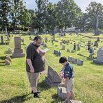 Colton Lustic (right) and Leo Dobies, both 9, of Cub Scout Pack 186, admire the historic stones in Prospect Cemetery in Brackenridge. This one is a gravesite from the Revolutionary War.