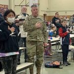 Air Force veteran Robert Hayden attended the Highlands event with family members Grayson and Ezra Killian, second and first graders, respectively.