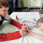 Captain America (Ethan Grainy, a Penn Hills High School junior) polishes 2-year-old Genevieve Olszewski’s nails.