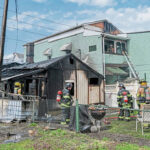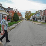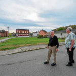 Harrison Commissioner Chuck Dizard and Bill Godfrey, president of Natrona Comes Together, walk through a historic section of Natrona on Thursday. The large empty lot between Center, Chestnut and Pond streets once had multiple structures that have since been lost to fires.