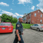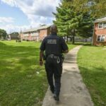 During a “park-and-walk” Tuesday, housing authority Officer Clarence Gunter was greeted by children ready to strike up a conversation.