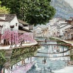 Her signature style combines vivid colors and reflections in landscapes, many of which were inspired by her travels to China, Japan and Southeast Asia.