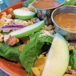 Or maybe a salad with baby spinach, golden raisins, walnuts, goat cheese, red onion, green apples, crushed Ritz crackers and an apple Vidalia onion dressing?