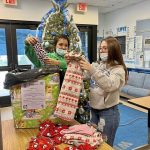 Leechburg Area High School senior Interact Club members Essie Talarico and MacKenna Fitzpatrick sort pajamas from the collection boxes in the school lobby.